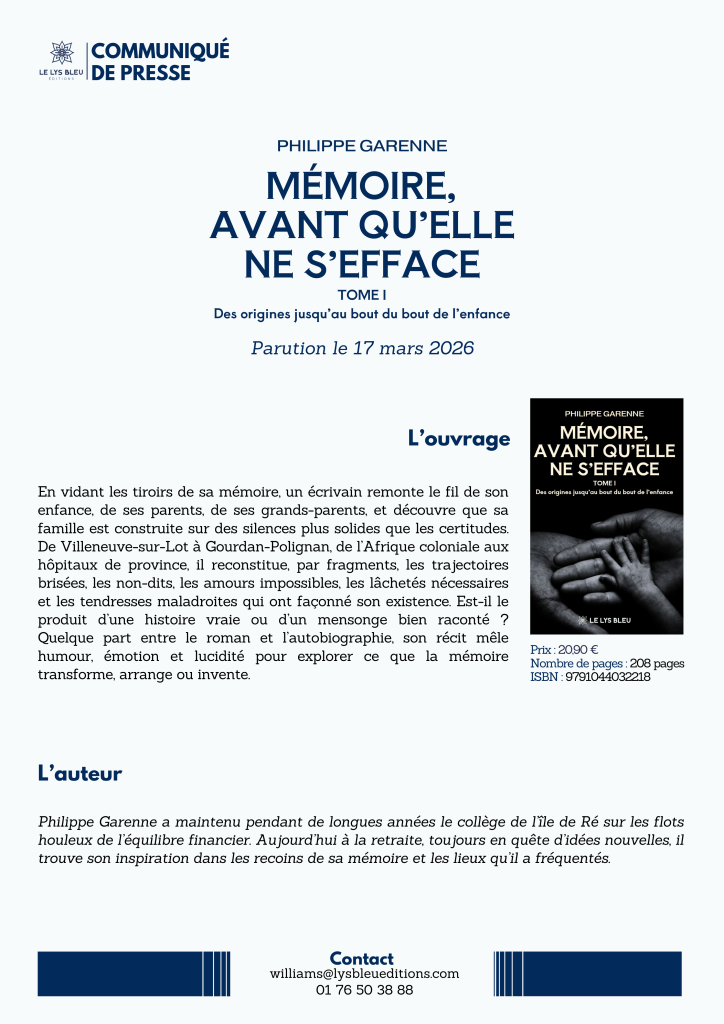 Porté par une curiosité constante, il explore aussi bien l’histoire familiale que les petites scènes de la vie française, toujours avec une plume précise et chaleureuse. Écrire, pour lui, n’est pas seulement raconter : c’est transmettre, éclairer, et parfois sourire de soi-même.